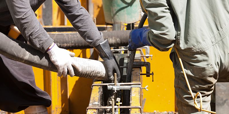 ただコンクリートを流し込むだけでは中に空気が入り、強固な基礎にはなりませんので、空気を抜きながら、コンクリートを流し込んでいきます。