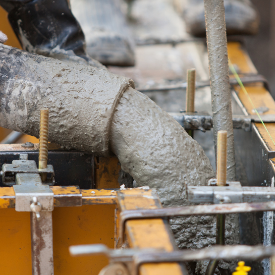 出来上がった型枠の中にコンクリートを流し込んでいきます。