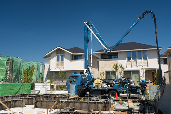 ただコンクリートを流し込むだけでは中に空気が入り、強固な基礎にはなりませんので、空気を抜きながら、コンクリートを流し込んでいきます。
